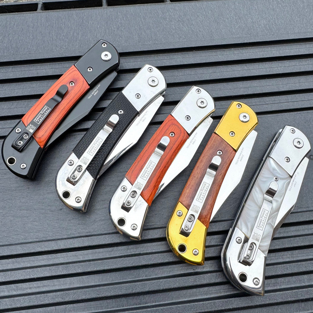 • BLACK G10 AND STAINLESS STEEL HANDLE WITH CLIP